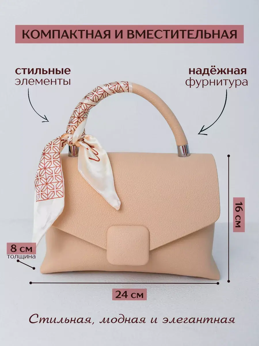 Представляем вашему вниманию женскую кросс-боди сумку, выполненную из мягкой экокожи премиум-класса. Она станет настоящим трендом сезона 2024г. и доступна в нескольких цветовых решениях, украшенных качественной фурнитурой. Ее можно использовать в качестве офисной, сохраняя деловой дресс-код, и брать на работу. Благодаря молодежному дизайну она подходит подросткам для учебы. Аксессуар классической формы в светлом цвете может быть использован как вечерний для свадьбы или других торжественных мероприятий. . Компактная и вместительная, она идеально подойдет для хранения всех необходимых вещей. Сумка имеет два просторных отделения, закрываемых надежными молниями. Внутри сумочки есть внутренний карман для мелочей и аксессуаров. Застежка-магнитная кнопка гарантирует безопасность вашего содержимого. На дне сумке металлические ножки (пукли). Ручка сумочки декорирована шелковым платком, платочек съемный, его можно при необходимости постирать. Все строчки идеально ровные, и качество изделия на высшем уровне. В комплекте к сумке идет плечевой ремень, который позволяют менять ее внешний вид и достигать желаемого комфорта. Классический дизайн этой женской сумки дополнит ваш образ и сделает его еще более элегантным и модным. Приобретайте кросс-боди сумку в нашем магазине - это идеальный выбор для современной женщины, которая ценит комфорт и стиль, чтобы выглядеть элегантно и неповторимо в любой ситуации! Кроме того, такую модную молодежную мини-сумку можно приобрести в подарок для жены, мамы, сестры, любимой, племянницы или подруги на день рождения, праздники 8 марта, новый год, день святого Валентина или без повода.