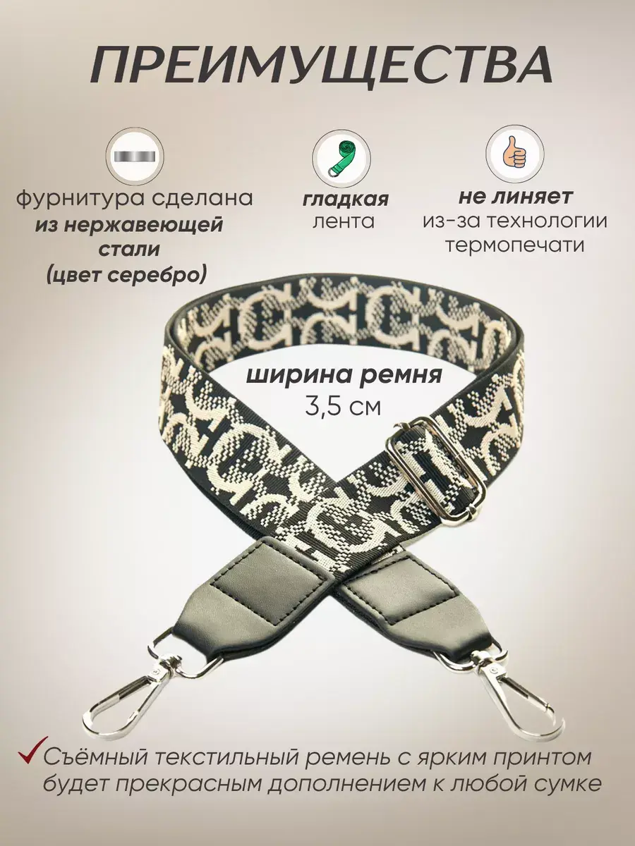 Съемный текстильный ремень прекрасное дополнение к любимой сумке. Плечевой ремень на сумку легко крепится при помощи замка-карабин. Ремень для сумки можно регулировать под себя. Качественная фурнитура ремня, изготовлена из нержавеющей стали, долго не теряет цвет и стойко сохраняет покрытие в течение длительного периода использования. Цвет фурнитуры СЕРЕБРО. Тканевый ремень для сумки двусторонний и универсальный, поэтому подойдет для любого типа сумки его можно носить на плече с сумками любой модели кросс-боди, хобо, тоут и просто в руке. Ремешок отлично подойдет для стиля кэжуал, спортивного, классического, городского стиля, а также стиля винтаж и спорт шик. Материал гладкий и прочный, принт нанесен с технологией термопечати. Минимальная длина ремня 75 см, максимальная - 138 см. ширина 3,5 см. Ремень для женской сумки представлен в яркой цветовой гамме, с этническими принтами, можно взять несколько, и менять в зависимости от настроения и выбранного образа. Декоративный ремень для сумки не привередлив в уходе, его можно почистить мягкой губкой или влажной салфеткой, а при сильных загрязнениях рекомендуется ручная или деликатная стирка. Широкий съемный ремень на сумку идеальный подарок, девушке, дочери, сестре, маме, жене или коллеге, на праздник 8 марта, день святого Валентина, Новый год или просто так. Купить широкий женский ремень для сумки отличный повод обновить вашу сумочку и дополнит образ. Хотите быть всегда в тренде, но не хотите переплачивать за каждую новую деталь гардероба? Не беда! Мы знаем, как обновить ваш образ стильно и экономно! Съемный текстильный ремень для сумки - это наш способ превратить вашу любимую сумочку в ультрамодный аксессуар! Теперь вы можете легко изменять свой стиль и подстраивать его под любые события и настроения. Мы предлагаем большой выбор плечевых ремней разных расцветок и фактур, чтобы вы всегда могли найти именно то, что подходит вашему стилю.