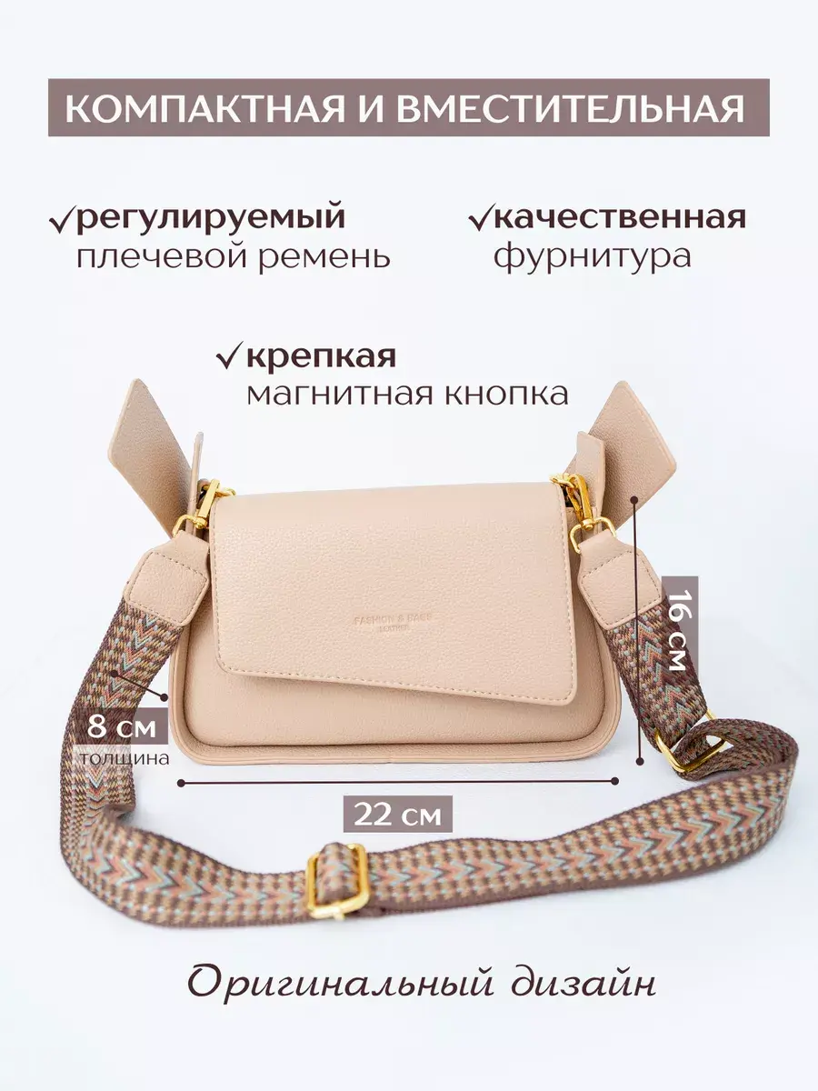 Представляем вашему вниманию женскую кросс-боди сумку, выполненную из мягкой экокожи премиум-класса. Она станет настоящим трендом сезона лето-осень и доступна в нескольких цветовых решениях, украшенных качественной фурнитурой. Эта стильная и модная женская сумка через плечо дополнит любой образ благодаря своему оригинальному дизайну и элегантности. Компактная и вместительная, она идеально подойдет для хранения всех необходимых вещей. Сумка имеет одн просторное отделение, закрываемое надежной молнией, а также прекрасно вмещает документы. Застежка-магнитная кнопка гарантирует безопасность вашего содержимого. Регулируемый плечевой ремень, украшенный модным принтом, усилен кожаными вставками в тон к сумке, что обеспечивает его устойчивость и долговечность. Все строчки идеально ровные, и качество изделия на высшем уровне. В комплекте к сумке идут три ремня, которые позволяют менять ее внешний вид и достигать желаемого комфорта. Классический дизайн этой женской сумки дополнит ваш образ и сделает его еще более элегантным и модным. Приобретайте кросс-боди сумку в нашем магазине - это идеальный выбор для современной женщины, которая ценит комфорт и стиль, чтобы выглядеть элегантно и неповторимо в любой ситуации! Кроме того, такую модную молодежную мини-сумку можно приобрести в подарок для жены, мамы, сестры, любимой, племянницы или подруги на день рождения, праздники 8 марта, новый год, день святого Валентина или без повода.